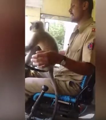Monkey Driving Bus In India Monkey Driving Bus In India : The driver sat back as the monkey steered the packed bus in india.