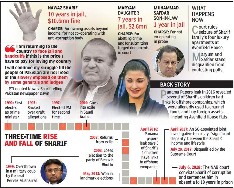 Pak Ex Pm Nawaz Sharif Sentenced To 10 Years Ri For Graft Times Of India - Disgraced former pakistan prime minister nawaz sharif flew to london today for medical treatment.